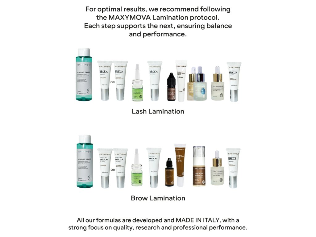 MAXYMOVA je italská značka založená v roce 2021, která se během tří let rozšířila do více než 50 zemí světa. Vyniká luxusním designem, nízkým zápachem přípravků na laminaci obočí a lash lifting, ekologickým přístupem a také inovativní řadou produktů pro SPA lash lifting.