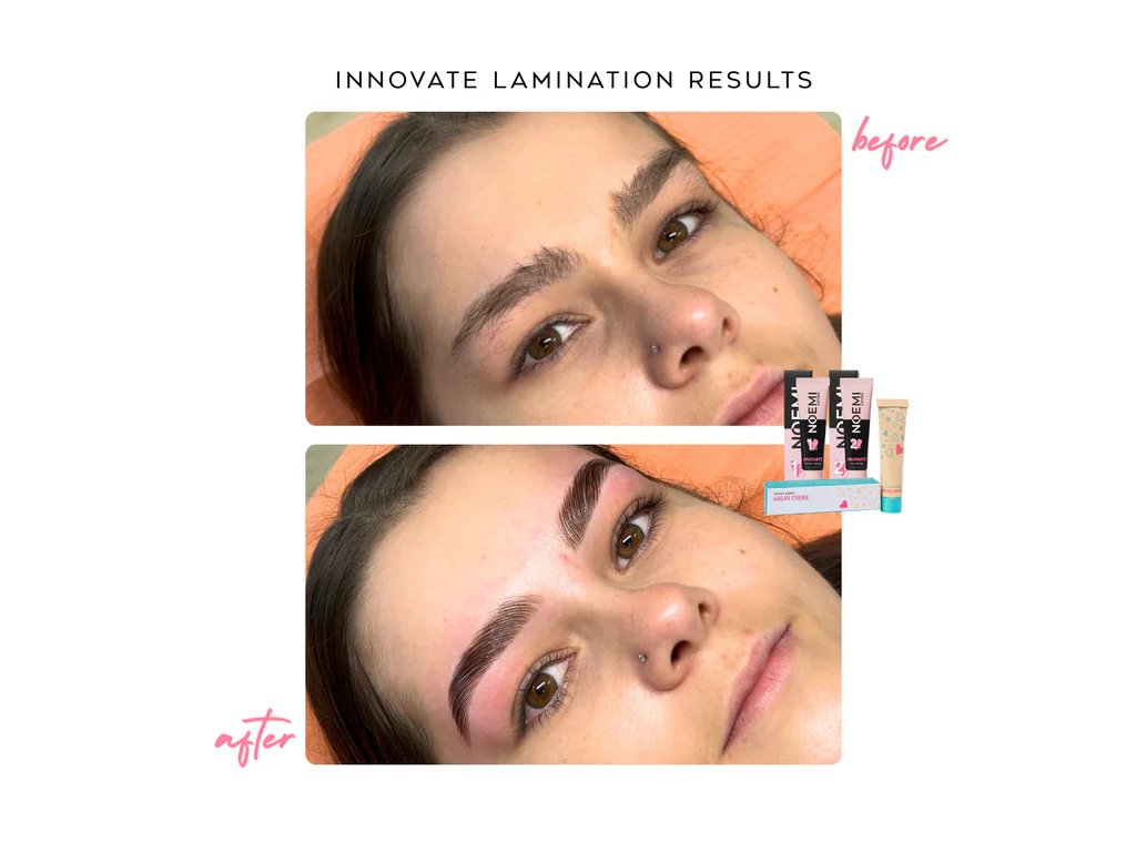 Naneste produkt jako první krok během lash liftingu nebo laminace obočí. Nechte působit 8–12 minut podle typu chloupků. Poté pokračujte dalšími kroky. Používejte pouze s Noemi Innovate Fix Lotion Step 2.
