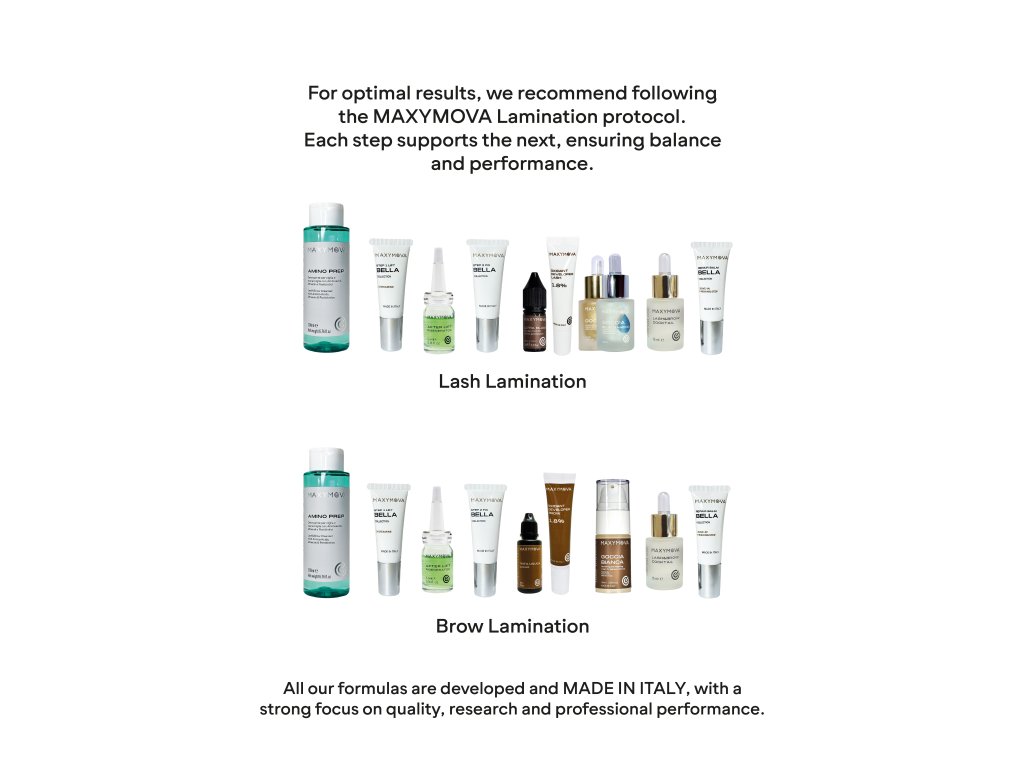 MAXYMOVA je italská značka založená v roce 2021, která se během tří let rozšířila do více než 50 zemí světa. Vyniká luxusním designem, nízkým zápachem přípravků na laminaci obočí a lash lifting, ekologickým přístupem a také inovativní řadou produktů pro SPA lash lifting.