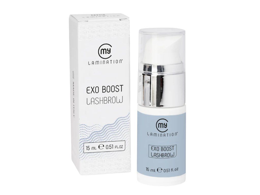 Exo Boost od My Lamination je profesionální btx sérum určené pro posílení a regeneraci řas a obočí. Kombinuje rostlinné exosomy s komplexem botanických extraktů a aktivních látek, které podporují kvalitu chloupků a omezují jejich vypadávání.