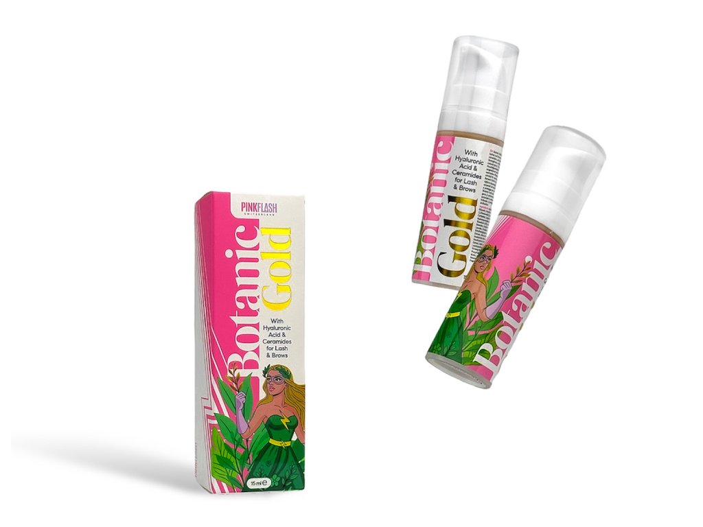 Botanic Gold je výjimečné aftercare sérum s lehkou gelovou texturou, které obohacuje závěrečnou fázi péče o řasy a obočí. Kombinuje kyselinu hyaluronovou, ceramidy a více než 10 botanických extraktů pro hydrataci, zklidnění a posílení chloupků – navíc se zlatým třpytivým efektem pro dokonalý finiš. Inspirováno korejskou technikou péče, dodává pokožce i chloupkům zdravý vzhled a luxusní lesk bez pocitu mastnoty.