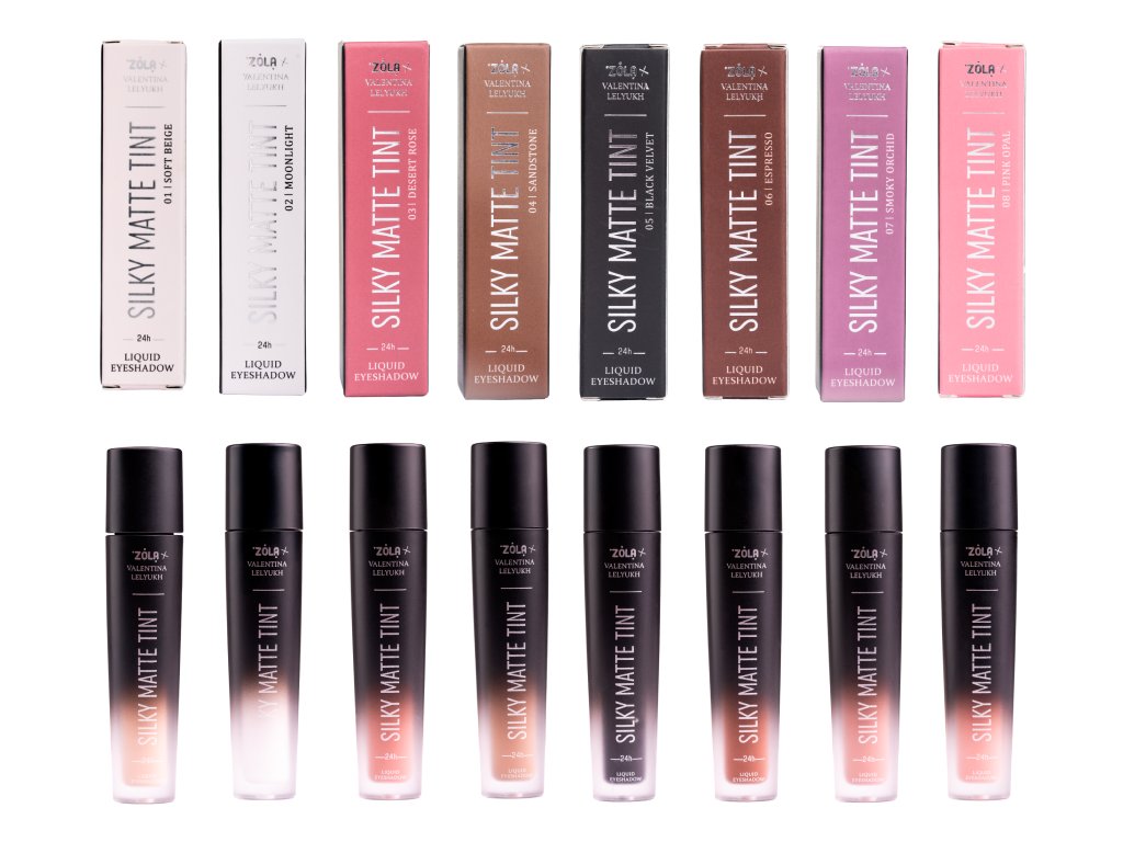 ZOLA Silky Matte Tint jsou tekuté oční stíny s hebkou texturou a luxusním sametovým finišem. Nanáší se snadno pomocí aplikátoru nebo konečky prstů a přirozeně splývají s pokožkou bez zvýraznění textury víčka.