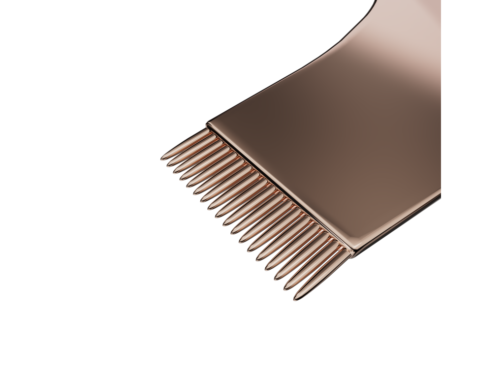 Díky promyšlené konstrukci hřebínku můžete jednotlivé řasy snadno izolovat, narovnat a rovnoměrně rozprostřít na natáčce. Ergonomický tvar poskytuje stabilní úchop a usnadňuje přesnou manipulaci při této detailní práci.