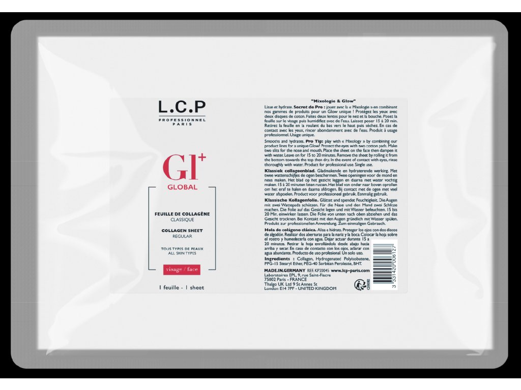 Použití: Umístěte kolagenový plát na obličej, udělejte otvory na nos a ústa, aktivujte navlhčení vodou, nechte působit 15 - 20 minut. Můžete přes kolagenový plát udělat masáž L.C.P. Paris Gua sha rollerem. Poté sloupněte. Kolagenový plát je určen pro 1 použití.