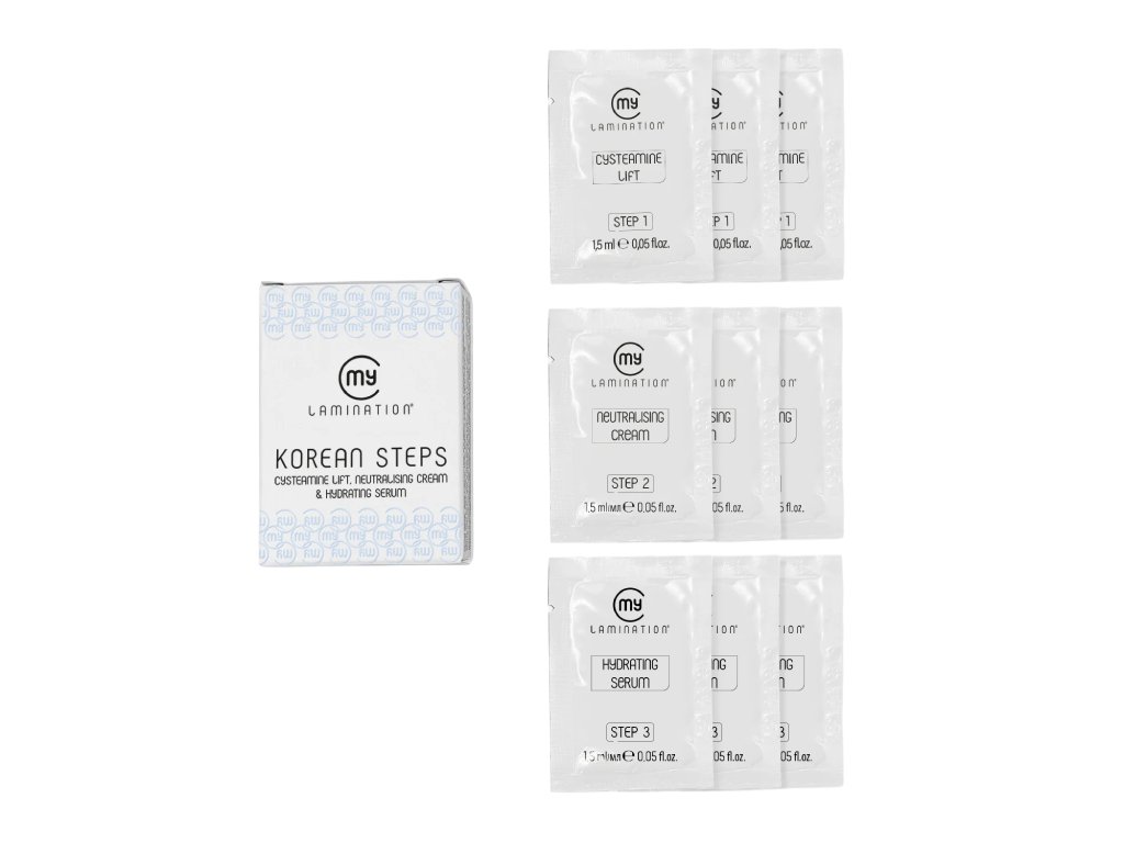 Korean Steps od My Lamination® jsou praktickým balíčkem pro lash artistky, které dělají korejský lash lifting a chtějí mít po ruce přesně dávkované produkty. Sada obsahuje kompletní tříkrokový systém.