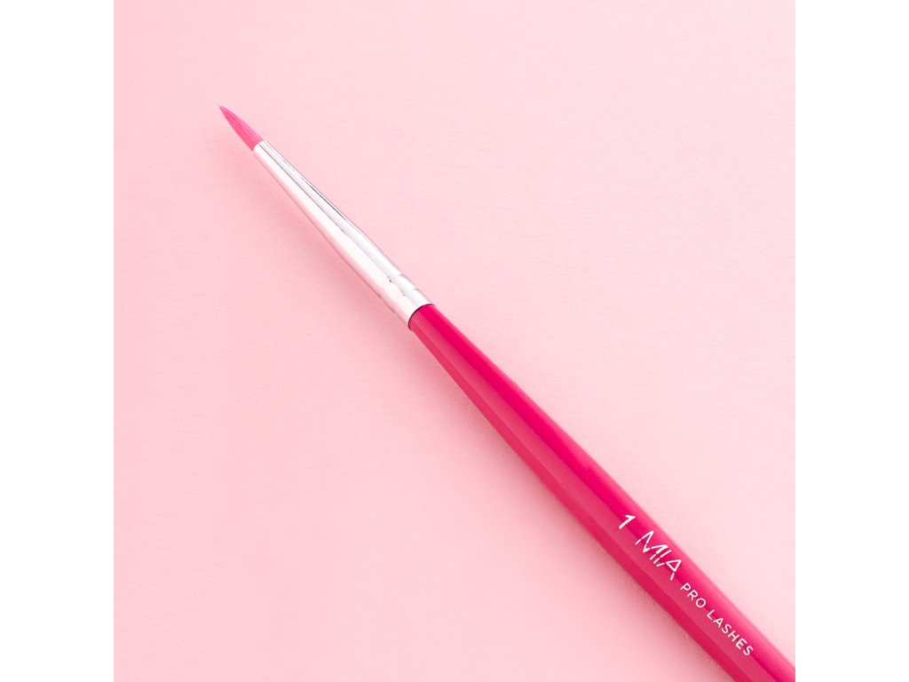 • Mia štětec №1: Podlouhlý kulatý štětec s ultra tenkým hrotem, vhodný pro nanášení přípravků při lash liftingu a techniku kreslení chloupků při barvení obočí.