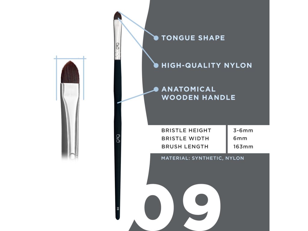 Štětec OKO #9 je profesionální nástroj pro lash & brow stylistky, který kombinuje funkčnost, preciznost a moderní design. Díky tvaru „jazýčku“ a kvalitním syntetickým štětinám umožňuje vykreslení detailních linií, hladké stínování i rovnoměrnou aplikaci liftingových přípravků. Skvěle drží tvar, nepelichá a je ideální pro práci s krémovými i gelovými texturami.