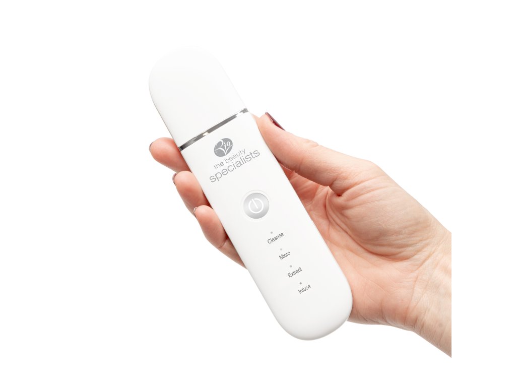 Ultrazvuková špachtle Rio Beauty FASC2 je multifunkční řešení pro péči o pleť, kterou hloubkově čistí a zároveň umí podporovat vstřebávání aktivních látek. Využívá vysokofrekvenční ultrazvukové vibrace (až 24 000 kmitů za sekundu) a jemné mikroproudy pro efektivní, ale šetrné ošetření pleti.