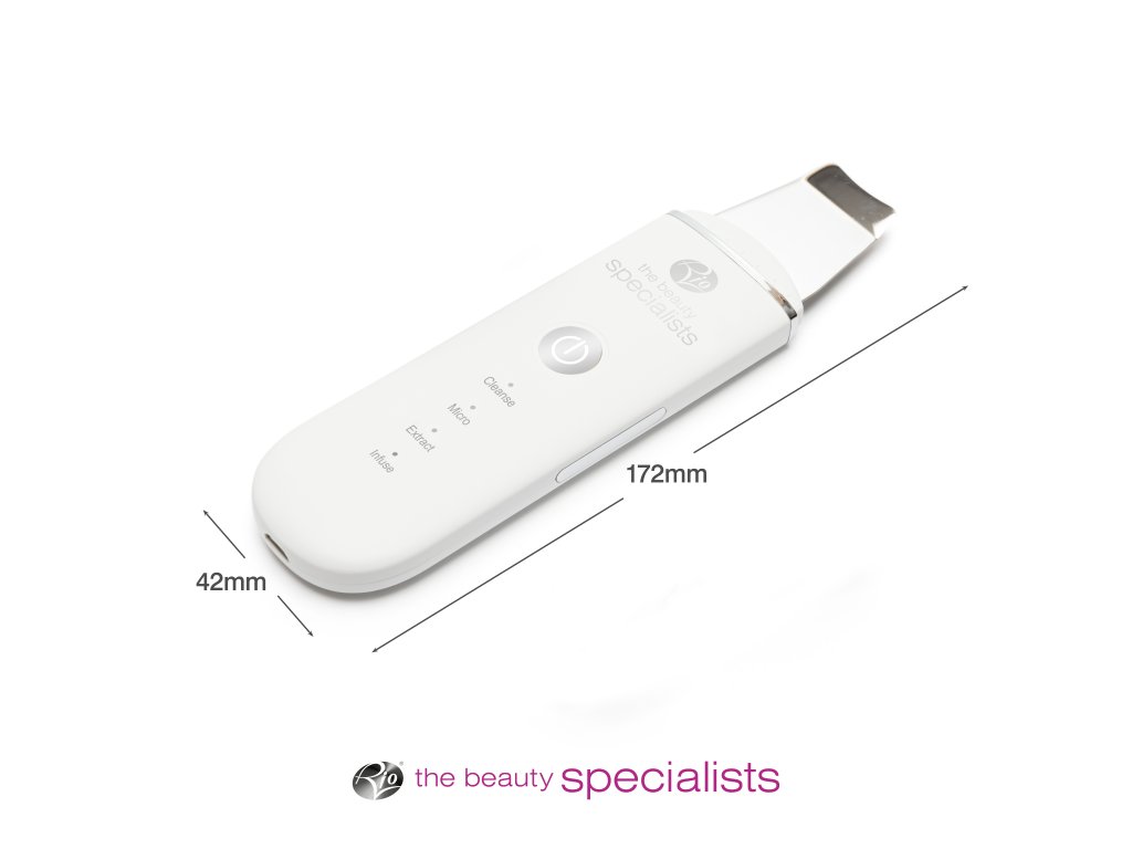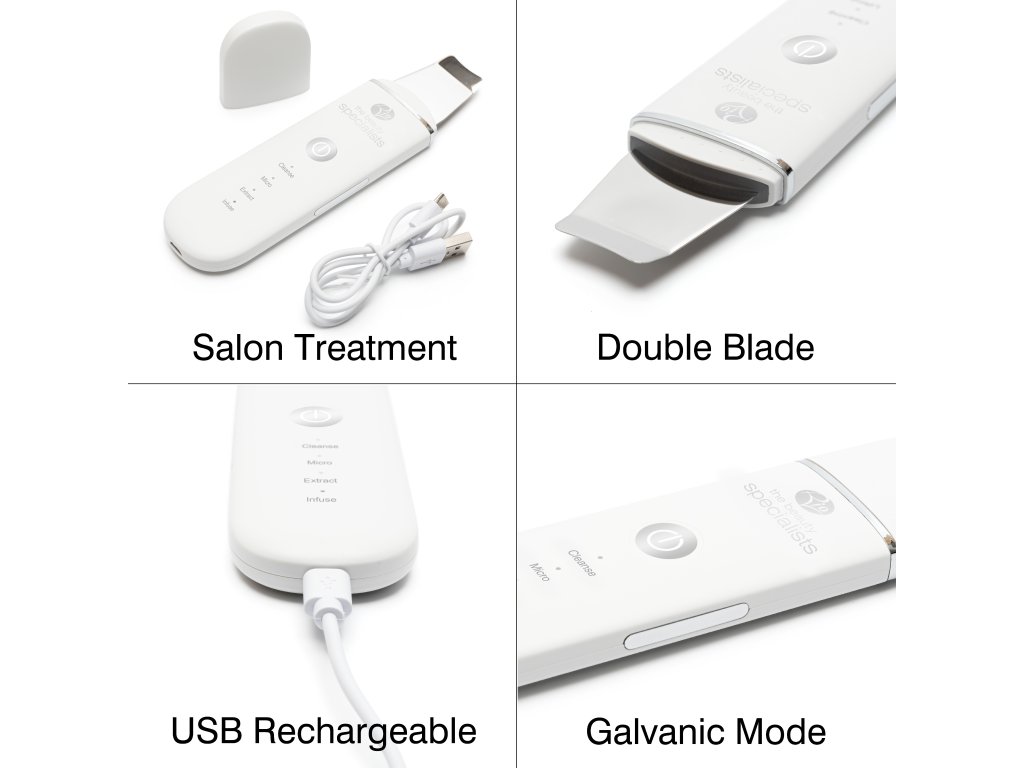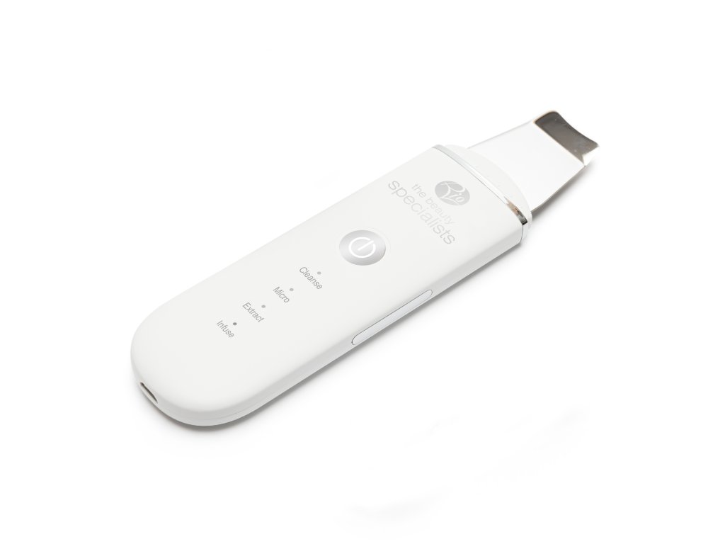 Špachtle pomáhá uvolnit zanesené póry, odstranit přebytečný maz i zbytky make-upu a zanechat pleť čistší a svěžejší. Přístroj současně napomáhá jemné exfoliaci, čímž přispívá k hladšímu vzhledu a sjednocenější textuře pleti. Díky funkci galvanické infuze podporuje pronikání aktivních látek ze sér a hydratačních produktů hlouběji do pokožky, a tím zvyšuje jejich účinnost.