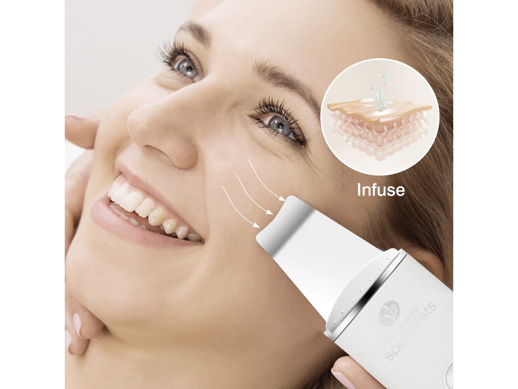 - Cleanse – ultrazvukové vibrace uvolňují maz, odumřelé buňky a nečistoty hluboko z pórů. Pleť je po ošetření čistší, hladší a svěžejší.